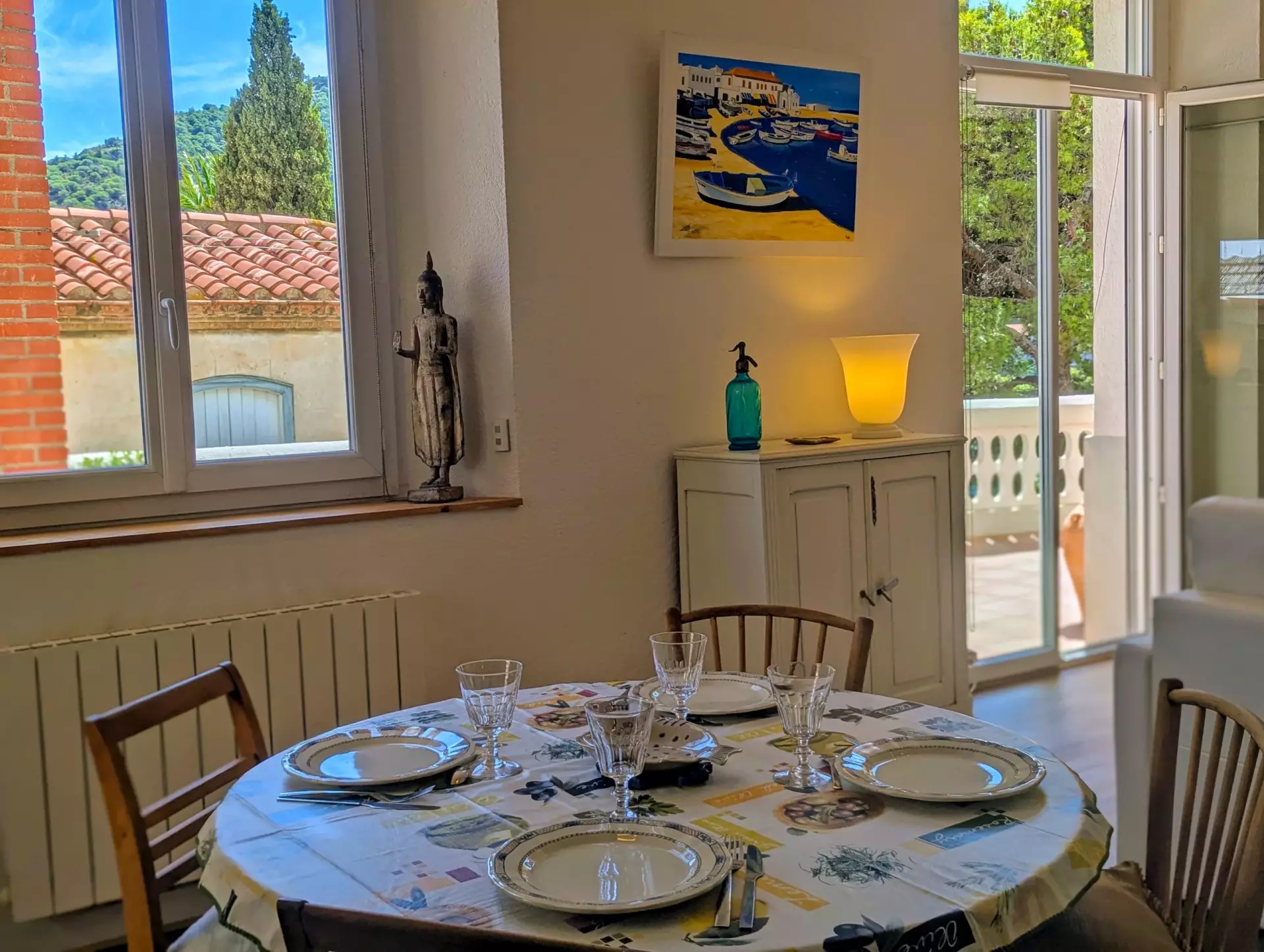 À quelques pas du port de Cerbère, Chez Daniel est un appartement de plain-pied baigné de lumière, où tout semble inviter à ralentir. Jadis occupée par un père passionné de mer, la maison garde les traces discrètes de son histoire : une corde nouée, une poulie marine au mur, quelques livres, des objets patinés, et surtout, les souvenirs de ses deux filles, qui y ont passé leurs étés.