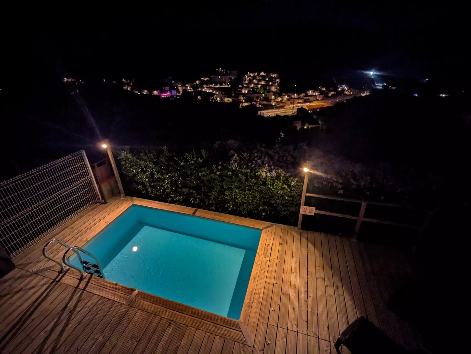 - Les deux chambres ouvrent sur une terrasse intermédiaire qui descend vers la piscine.