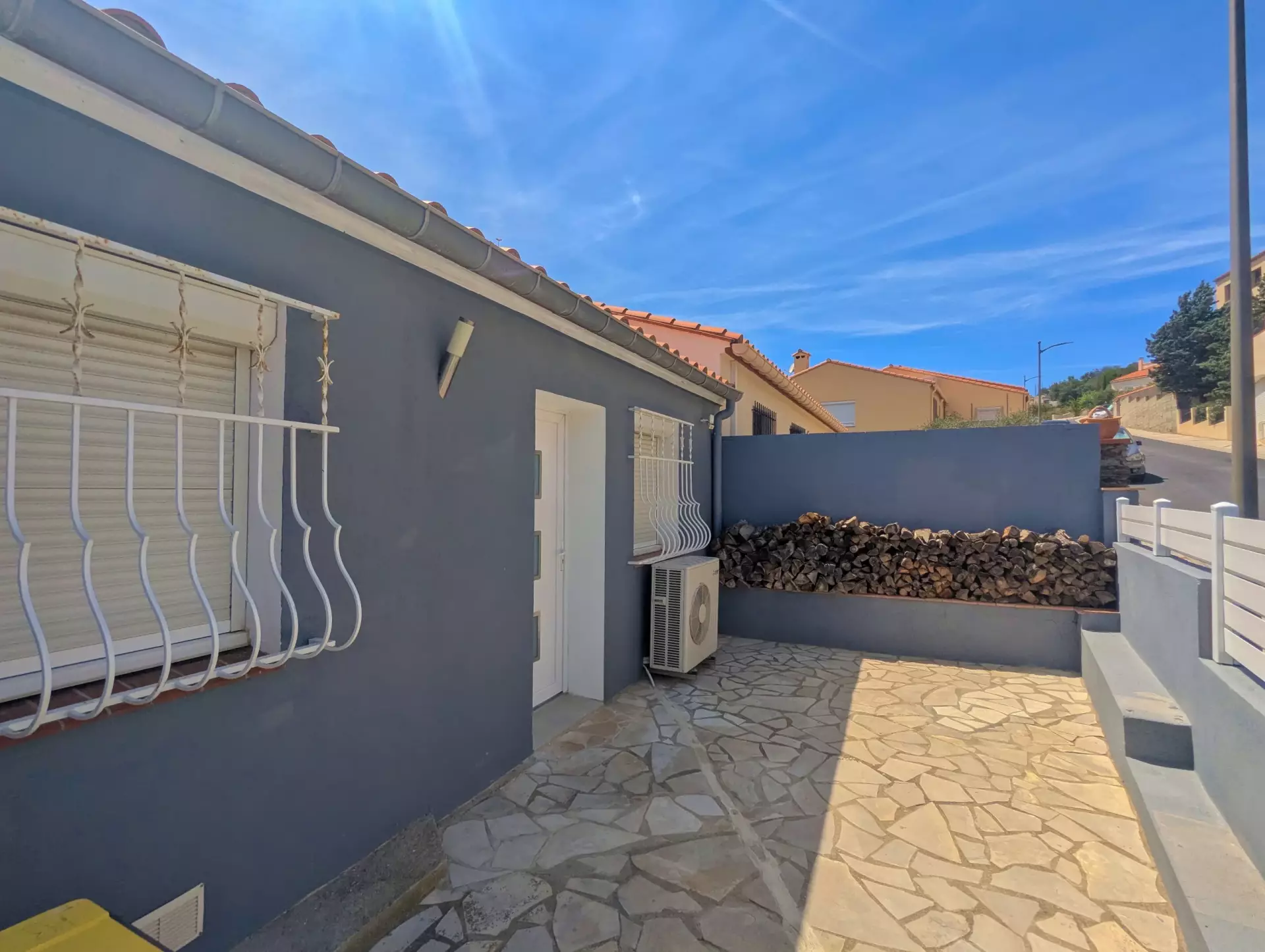 - Terrasse plein sud-est avec vue panoramique mer, Pyrénées et village.